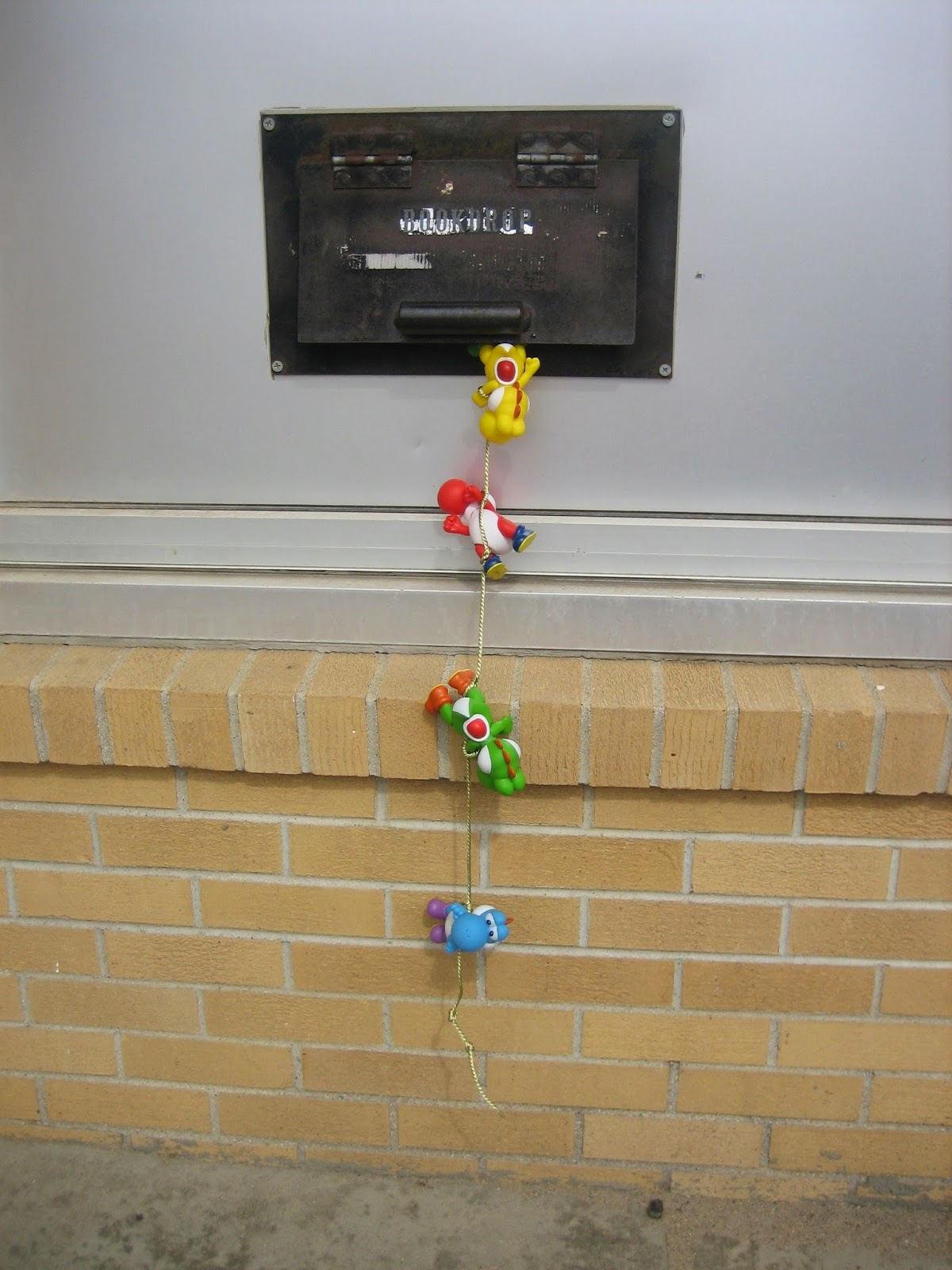 As nightfall descended upon the village, the Chief cleverly hid in the Library. Shortly before midnight, Chief of Police Langseth heard a rustling outside of the building. Soon, the faint creak of the bookdrop door was heard. There were whispers and giggling as four tiny dragons slid almost-silently down the book chute.