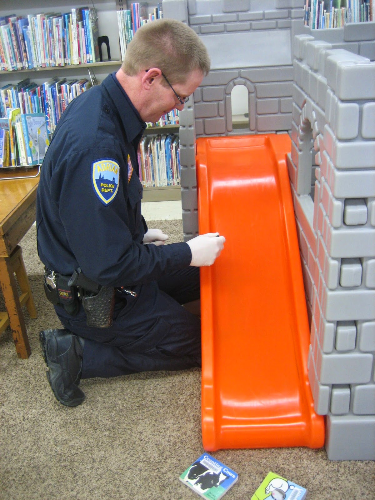 Police Chief Shawn Langseth received a frantic telephone call on Monday, February 24, 2014. “It’s GONE,” wailed the voice at the other end of the line, “GONE!” The call was from Adrian Branch Librarian, Meredith Vaselaar. She was referring to the library’s trusted long-time tape dispenser. “Are you sure you simply didn’t misplace it?” Langseth asked, “Perhaps it is underneath something.” (A valid question, as the librarian is known for being a bit untidy.) “It is not lost,” insisted Vaselaar, “it is truly missing!”Faster than you can say “Bob’s-Your-Uncle” (movie reference, thank you), Chief Langseth had arrived at the library. What greeted his eyes was not only chaotic, but also disturbing: a distraught librarian, wringing her hands; a check-out desk, littered with shards of newspapers; glue and scissors in disarray. However, there was one more thing that indicated that this was not an ordinary mishap.
