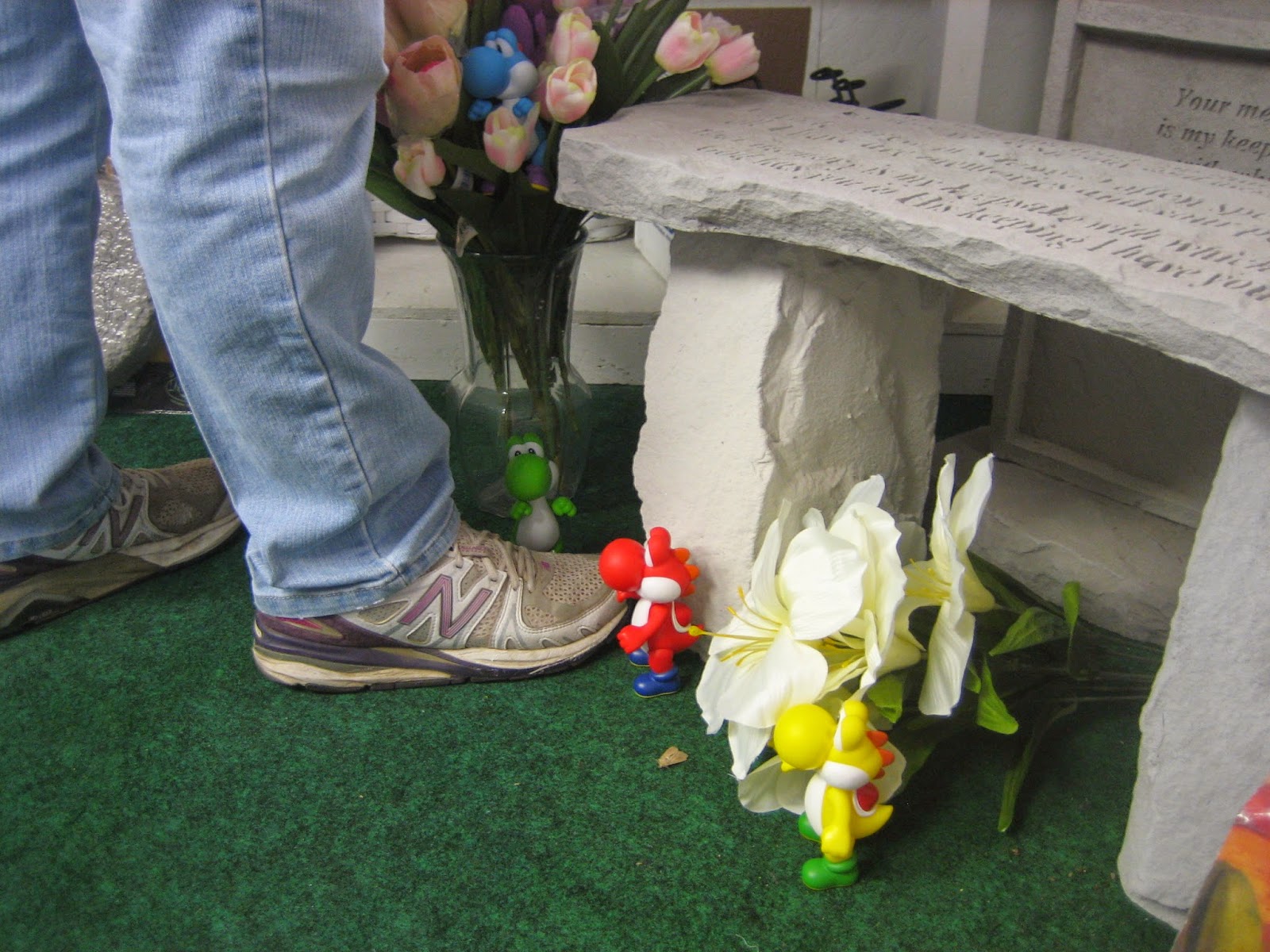 The dragons seem ready to help themselves to some beautiful flowers at McCarthy's floral, as they sneak around Jane's feet. Thus far, they have been too slippery to catch!