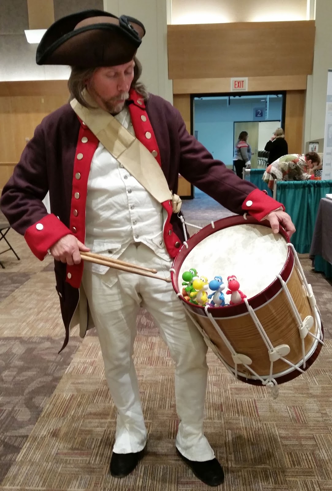 The Dragons were pleased to meet a Revolutionary War soldier at MLA - and couldn't resist checking out his drum!