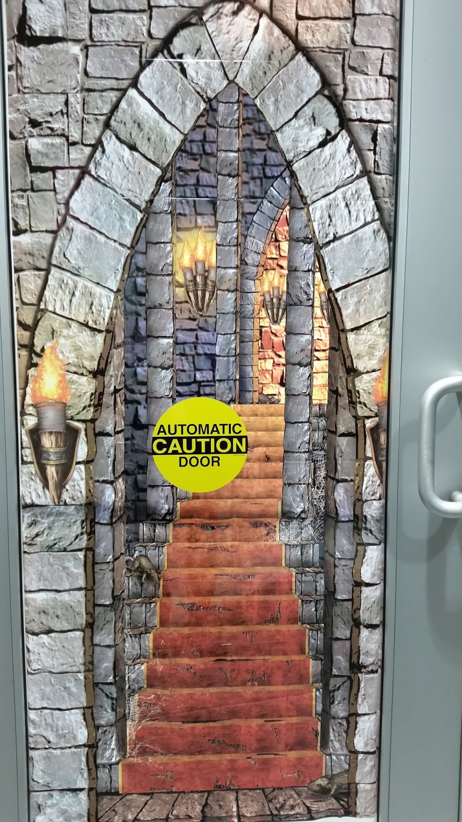 So, here I am, thinking I have this brilliant idea to have the door going into our library decorated as a Medieval castle entry. My better half was helping me, and while I was contemplating if it was OK to have it off center, he began to laugh and pointed out that it was probably the first ancient castle to have an automatic door.....