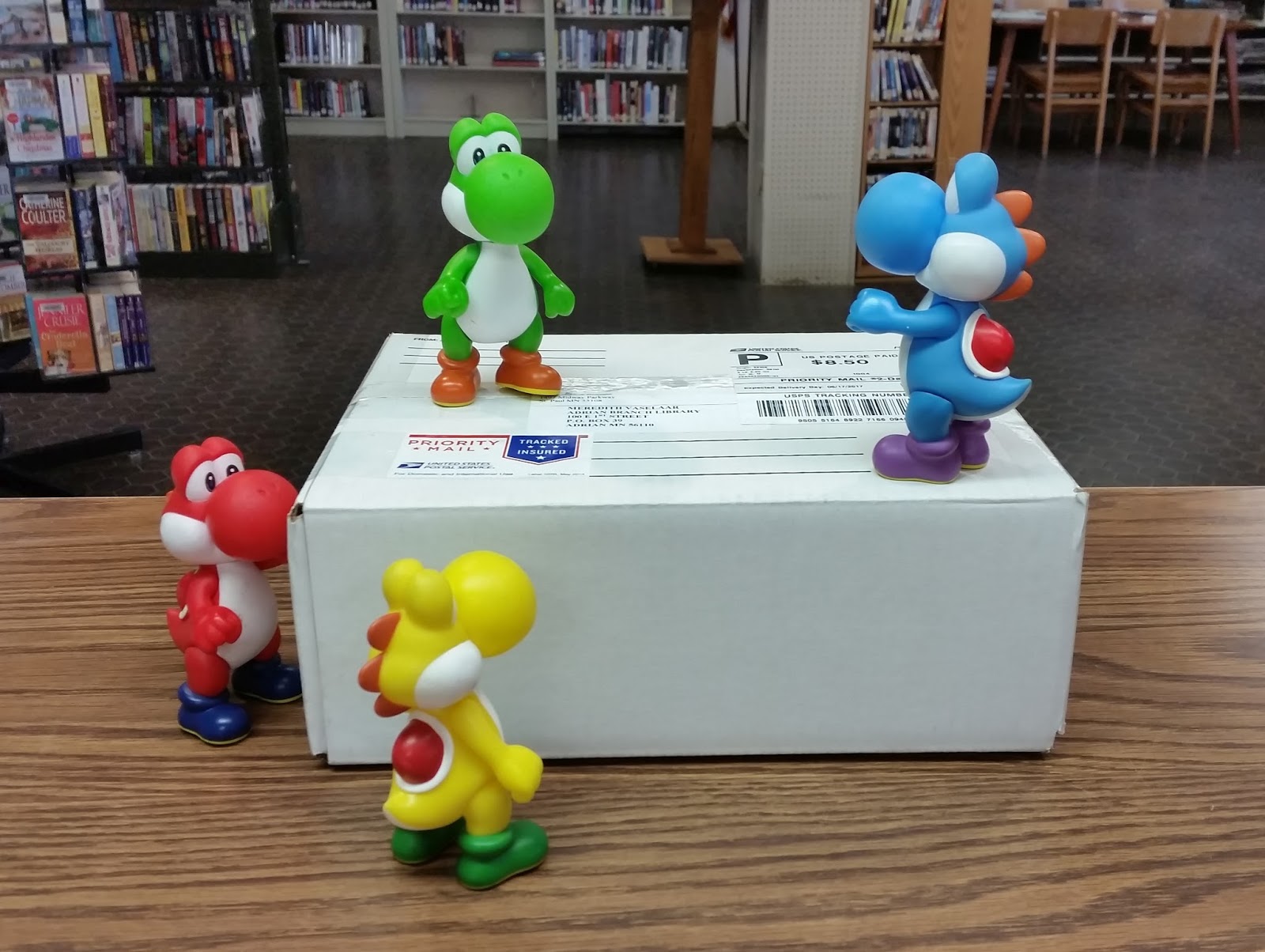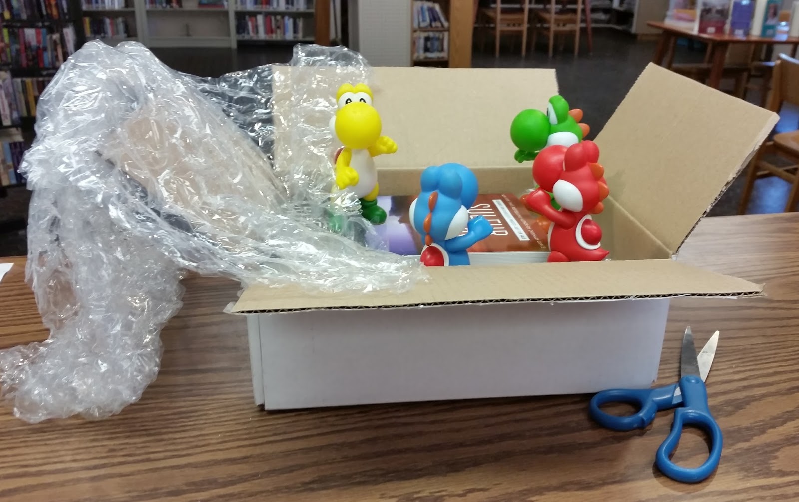 I would like to say that the Dragons were really excited about the wonderful books (I know I was) but then they discovered something that, for Library Dragons, was a bit more entertaining. . .