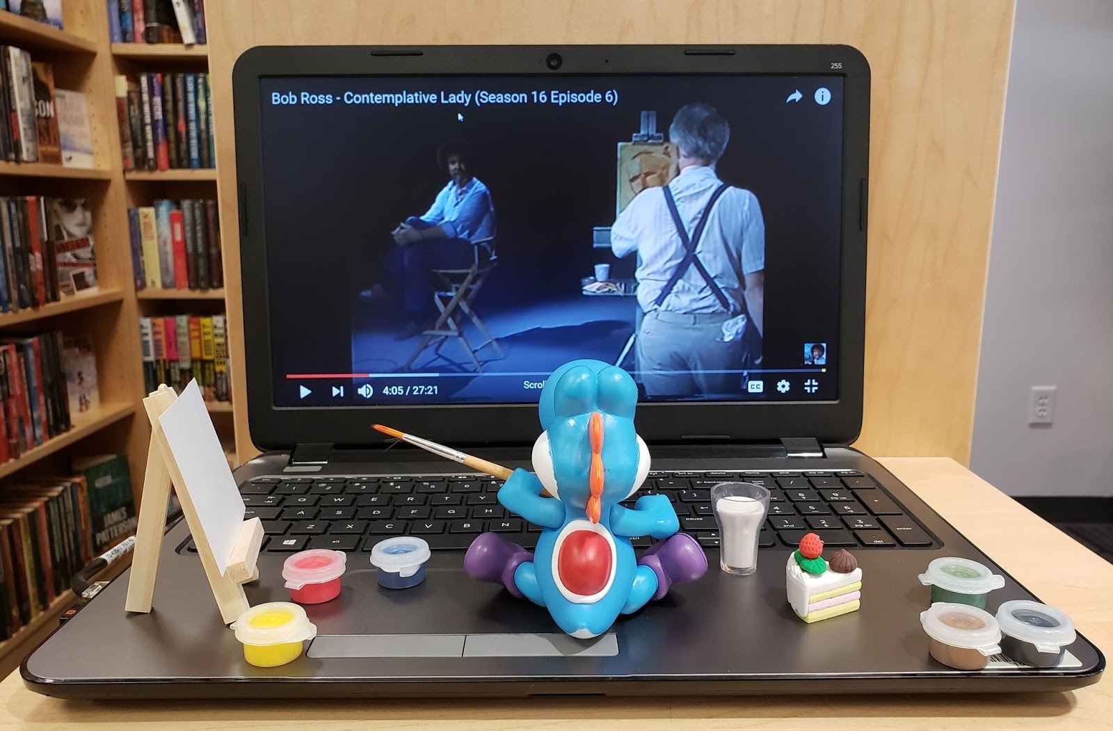 To view Theo channeling Bob Ross, click once on the first picture, then use the right arrow key to scroll through as a slide show. Enjoy!