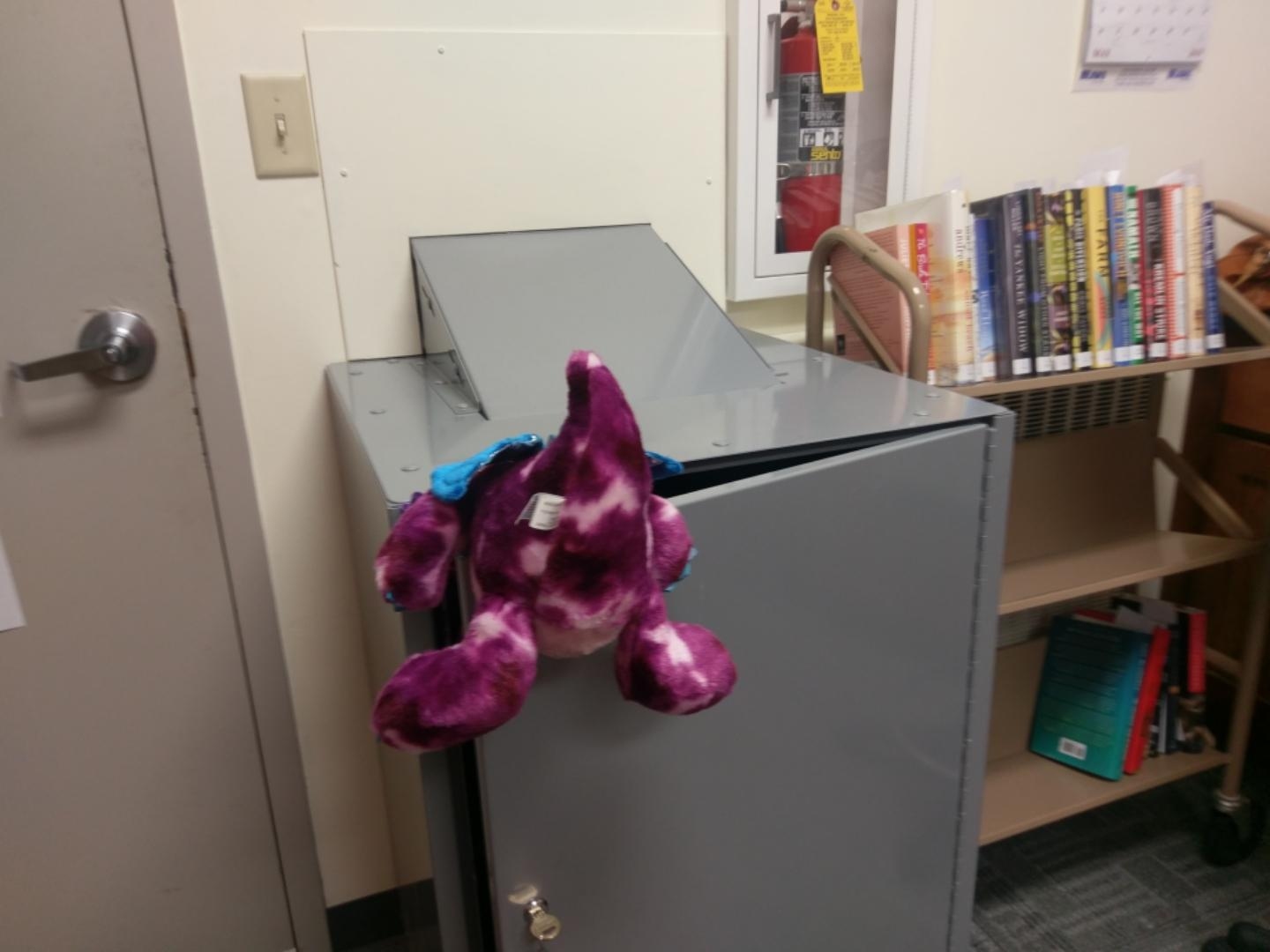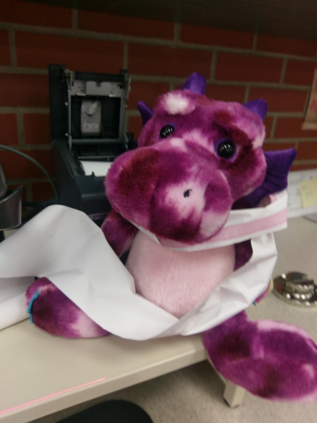 May 1st was the Library Open House. Guess we should have been more careful about who we invited, because the Librarians of the Rock County Library attended, then left with something that did not belong to them – one of our snuggly Dragons from our castle!